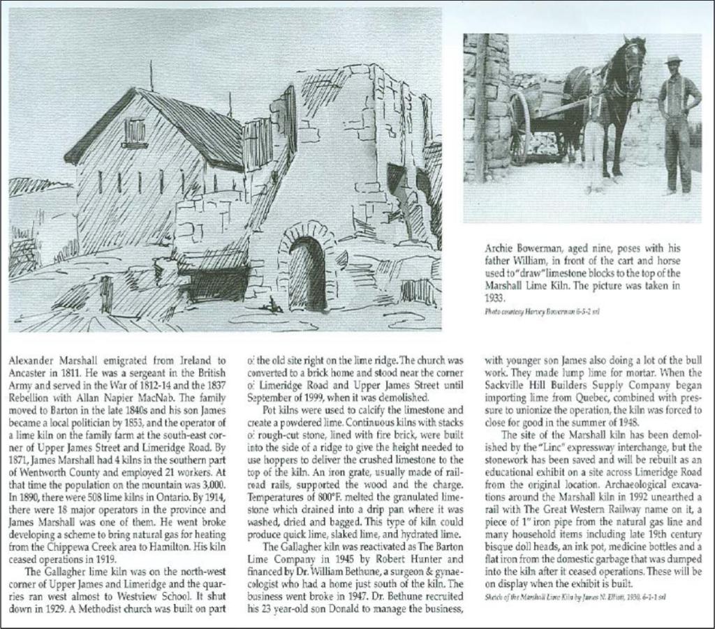 So at last week’s family gathering, we collectively as a family children, grandchildren made a journey to that exact spot (now a just walk-way as there is no trace of this building anymore). Even the landscape packed with an earthen noise-barrier shows no sign of what was there in earlier days, although in recorded history there is mentioned about the barn and the adjacent lime kiln with the Bethune family dwelling. See the book: Mountain memories: A pictorial history of the Hamilton Mountain published January 2000 by the Hamilton Mountain Heritage Society.