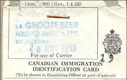 Having packed our suitcases the day before, we were all eager to disembark. After nine days of ocean travel all the while experiencing a heavy Atlantic storm, causing much sea-sickness among the passengers, the immigrants looked forward to setting foot on solid land. The next day the landing cards were stamped and the families were allow to transfer to the arrival shed where there were some people who welcomed us in Dutch and we waited to be assigned a location on the Canadian Pacific train parked next to the building. My mother as usual would notice on entering on board that the seats were dusty and the compartment looked old. As the weather had warmed many of us took off our coats and stored our luggage overhead and waited. No one seemed to know when the train would leave, all we knew was that we were headed to Montreal and Toronto.
